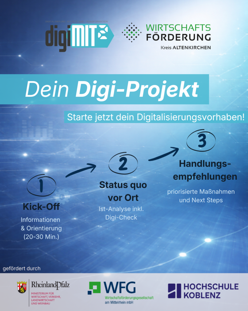 Als zentrale Anlaufstelle für Unternehmen im Landkreis Altenkirchen ist es unser Ziel, die wirtschaftliche Entwicklung in der Region zu unterstützen. Wir bieten Hilfestellung, wertvolle Kontakte und Informationen zu Fördermöglichkeiten – alles kostenfrei, praxisnah und auf die Bedürfnisse der Nutzerinnen und Nutzer abgestimmt. Wir verstehen uns als Vermittler zwischen Wirtschaft, Verwaltung, Politik und Wissenschaft, um gemeinsam Lösungen für eine starke Wirtschaft in einer starken Region zu finden.