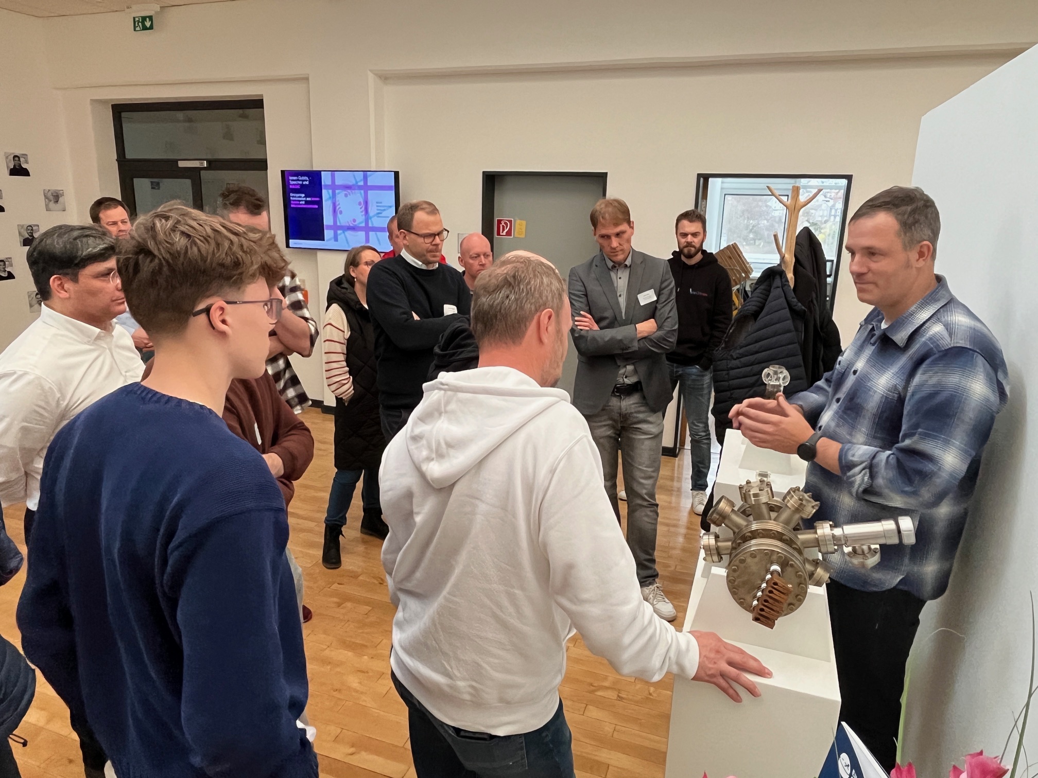 Besonders beeindruckend war die Möglichkeit, den Quanten-Computer aus nächster Nähe zu erleben. Die eleQtron GmbH setzt auf die innovative Ionenfallen-Technologie, die es ermöglicht, Quantenbits (Qubits) mit hoher Präzision zu kontrollieren. Diese Technologie unterscheidet sich grundlegend von anderen Ansätzen und bietet vielversprechende Perspektiven für die Zukunft.